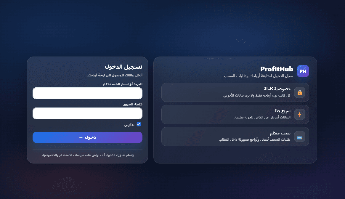 • 🔍 نظام شفاف لمتابعة الأداء والأرباح