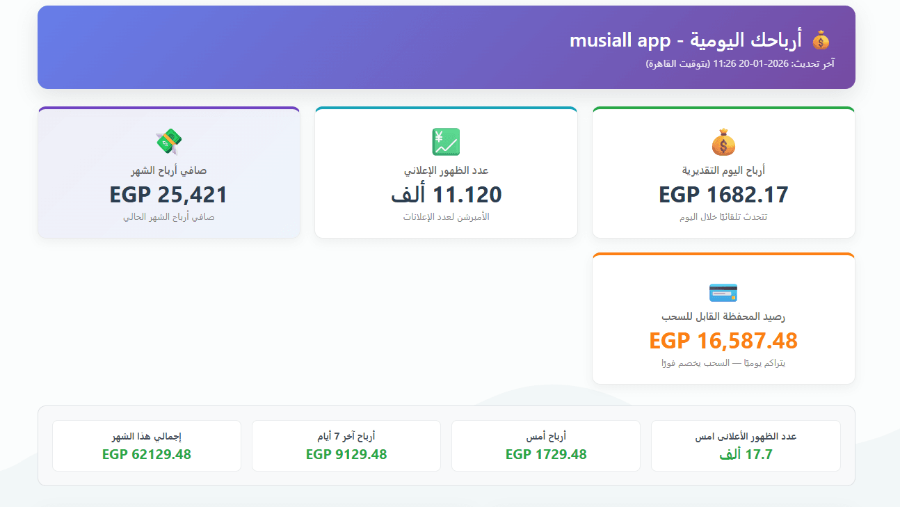 أسهل وادق لوحة فى الوطن العربى لمتابعة ارباحك